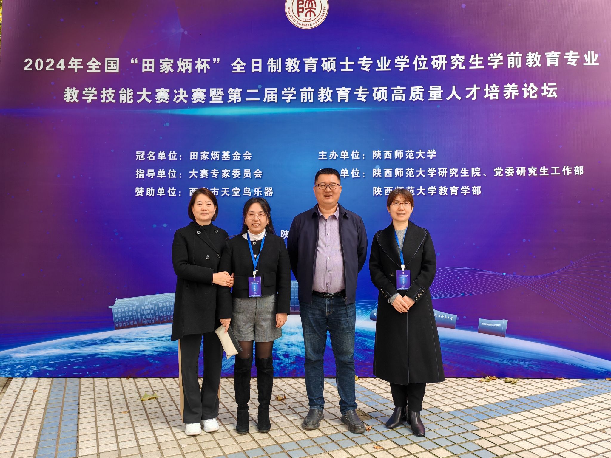 11月9日至10日,第二届全国学前教育专硕高质量人才培养论坛暨2024年全国“田家炳杯”全日制教育硕士专业学位研究生学前教育专业教学技能大赛决赛在陕西师范大学举行。本次论坛的主题是“教育强国背景下的学前教育专硕高质量人才培养”,来自北京师范大学、浙江师范大学、广西师范大学等全国89所高校150余位代表参会。中国学前教育研究会理事长侯莉敏、副理事长秦金亮等出席并做大会主旨报告。学前教育学院副院长赵四鸿、党总支委员雷巧娟等一行4人参加了论坛。副院长路娟受大会邀请为2024年全国“田家炳杯”全日制教育硕士专业学位研究生学前教育专业教学技能大赛决赛评委。