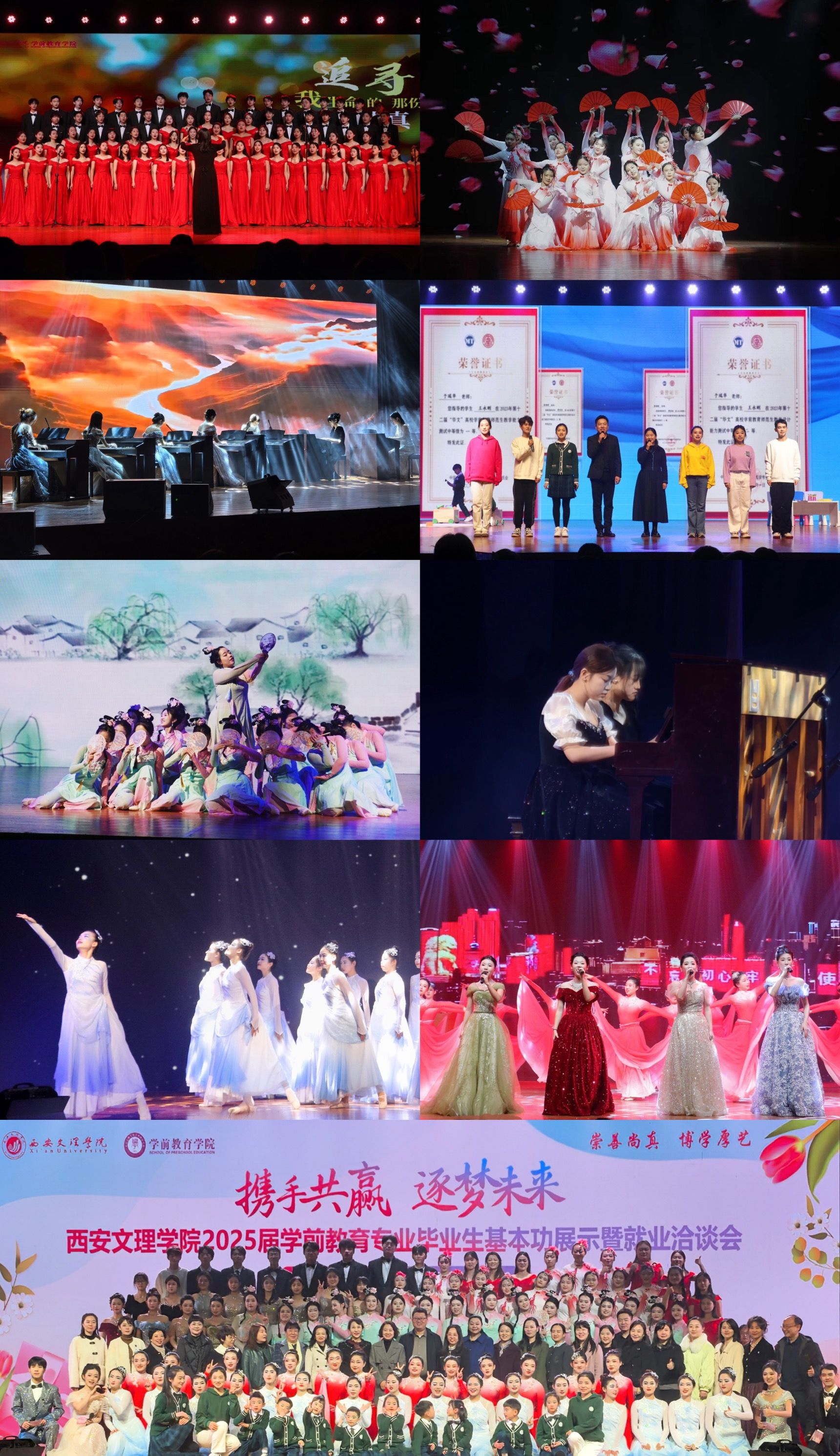 本次洽谈会邀请来自多地区的73家招聘单位,还设置了征兵及西部计划宣传窗口,为毕业生提供了多样化、多元化的就业选择。活动期间,学前教育学院为18名新聘校外就业指导专家颁发聘书,并通过基本功展示环节充分展现了毕业生的专业素养与艺术修养,涵盖歌唱、舞蹈、钢琴演奏等形式,赢得广泛好评。美术创意工坊展示了毕业生设计的玩教具与艺术作品,契合幼儿发展需求,体现了专业特色。