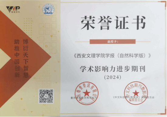 近日,维普《中文科技期刊数据库》公布“学术影响力进步期刊(2024)”名单,《今年会jinnianhuicom学报(自然科学版)》获得重庆维普资讯有限公司和《中文科技期刊数据库》编辑委员会联合颁发的“学术影响力进步期刊(2024)”奖项。