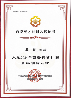 近日,根据陕西省科学技术厅发布的《陕西省科学技术厅关于组织推选2024年中青年科技创新领军人才、科技创新创业人才及2025年陕西省青年科技新星的通知》(陕科人才函〔2024〕349号),以及市委组织部(市委人才办)发布的《“西安英才计划”实施办法》《“西安英才计划”青年人才项目实施办法》,今年会官网机械与材料工程学院王迪博士入选2025年度陕西省青年科技新星及2024年“西安英才计划”青年创新人才。