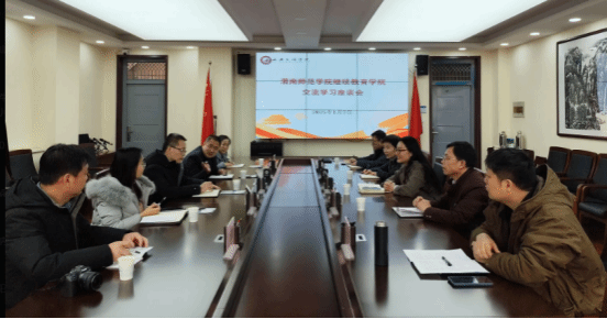 1月7日下午,渭南师范学院继续教育学院直属党支部书记周德锋、副院长苟鹏军、副院长宋丽萍等一行五人来我院进行调研交流。继续教育学院院长郑旻、书记樊建峰、副院长姚媛及成人教育科、培训科、学院办公室干部共同参加了座谈会。