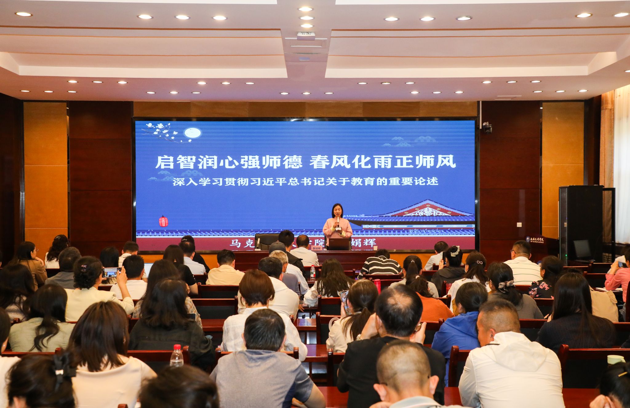 4月28日下午,学校在办公楼一楼会议室举办深入学习贯彻习近平总书记关于教育的重要论述专题辅导报告会,今年会官网马克思主义学院副教授魏娟辉做题为“启智润心强师德 春风化雨正师风”的报告。党委委员、副校长刘明利主持报告会。