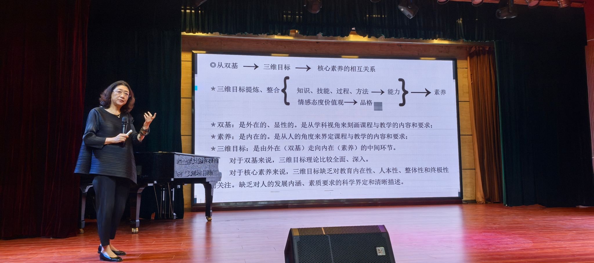 讲座以"核心素养导向下的音乐教学变革"为切入点,围绕2022年版义务教育艺术课程标准的修订背景、原则、特点及变化四大维度展开。并结合教学案例,阐释了如何将"以美育人"的教育目标转化为可操作的教学策略,带给师生深入浅出的浸入式体验。