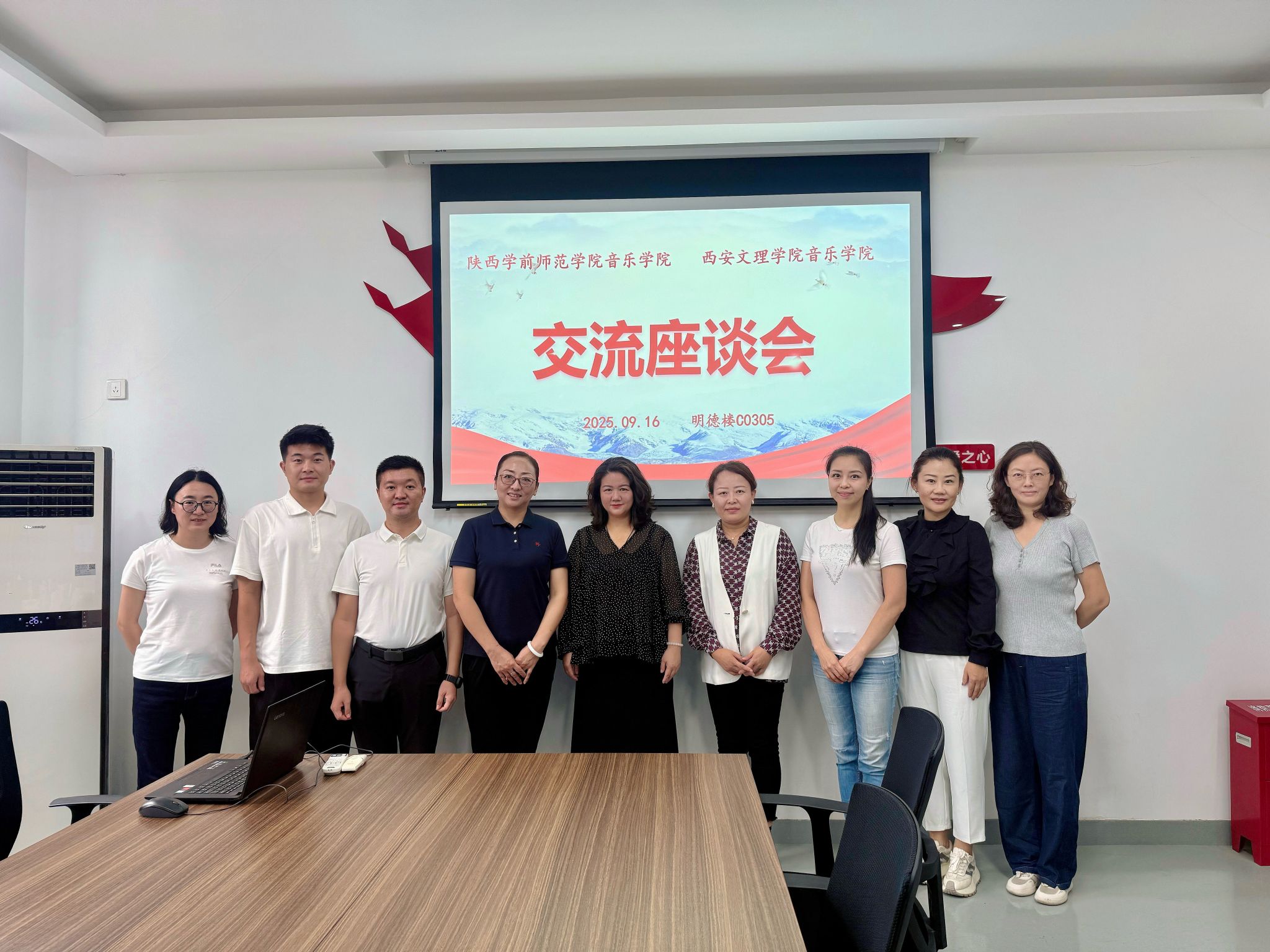 9月16日,陕西学前师范学院音乐学院院长葛晓妮、教学副院长赖琼琼、科研副院长白学良等一行五人到今年会官网音乐学院进行“师范专业认证”专项工作调研交流。音乐学院院长杨艺媛、教学副院长郭瑞玺、音乐学系主任田明、教学办副主任胡雅洁参加了调研活动,会议由杨艺媛主持。