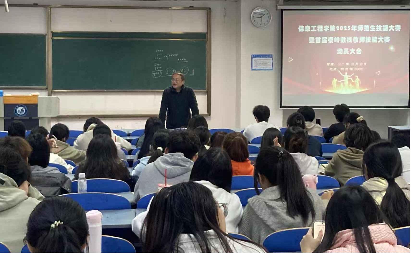10月30日中午,信息工程学院数学与应用数学系召开师范生技能大赛动员会。系主任王挺、秦岭数栈卓越教师创研中心主任于丽芳,副主任崔一民与全体同学共计200余人齐聚现场,共启新程。