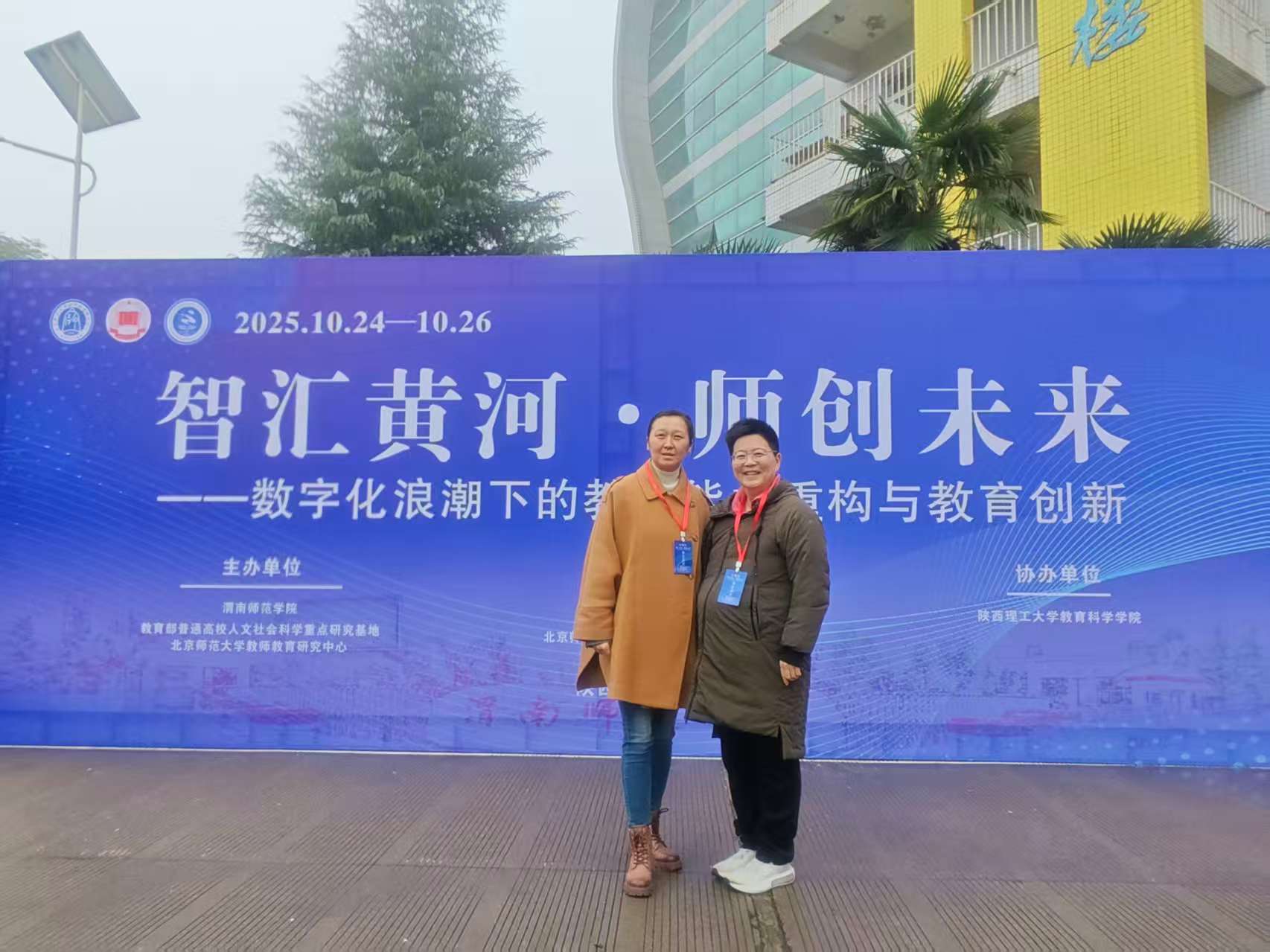 2025年10月24日至26日数字化赋能教师发展暨第二届教师教育黄河论坛在渭南师范学院举行。此次论坛由渭南师范学院、教育部普通高校人文社会科学重点研究基地、北京师范大学教师教育研究中心共同主办,论坛主题为“智汇黄河 师创未来——数字化浪潮下的教师能力重构与教育创新”。今年会jinnianhuicom师范学院教师何悦博士、张焱博士参加了此次论坛,并做分论坛汇报。