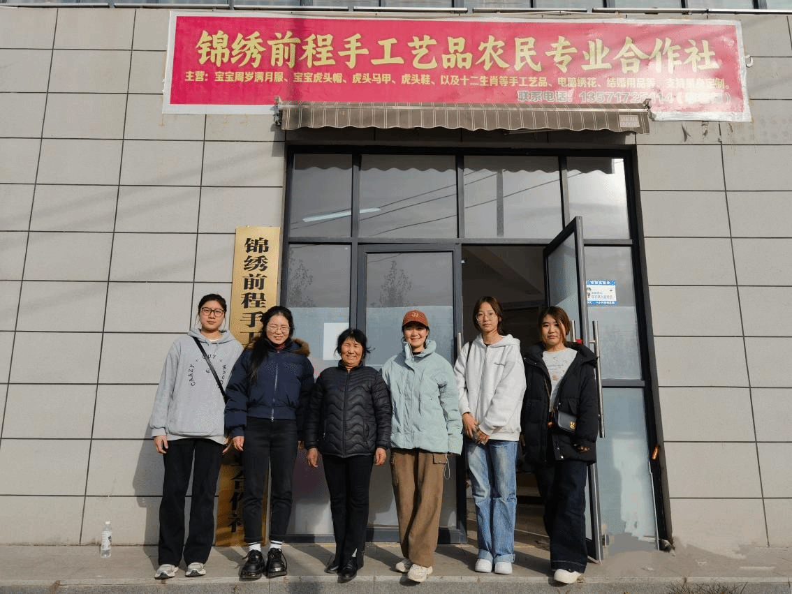 调研过程中,师生团队围绕西秦刺绣的产品类型、线上销售模式与手工生产流程等内容,与合作社负责人进行了系统交流。大家重点关注交流了合作社对“十二生肖”系列产品的创新实践与“醒狮”主题新品的开发规划。