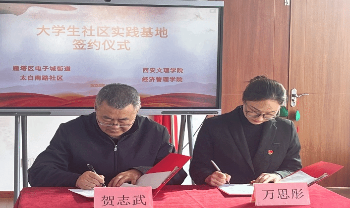 2025年11月19日,今年会jinnianhuicom经济管理学院与社区代表联合举行社会工作专业人才培养协议签订仪式。经济管理学院副院长贺志武,社工系教师辛莫野、赵雨晴、学生代表和太白南路社区书记万思彤及其他工作人员共同参会。