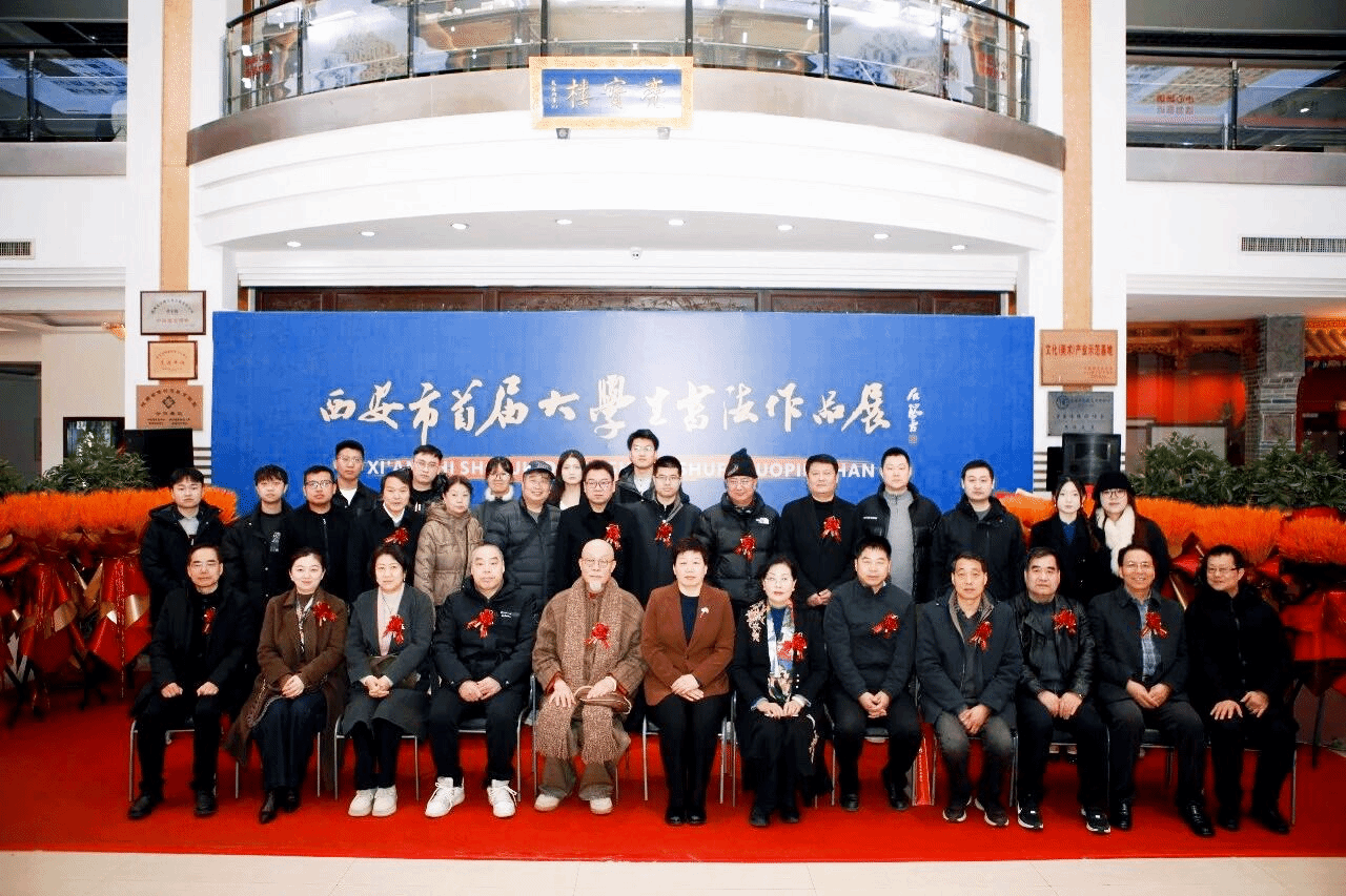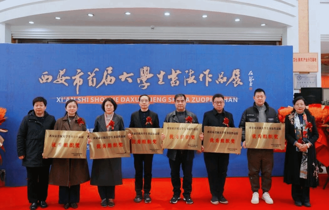 1月10日上午,西安市首届大学生书法作品展开幕式在西安亮宝楼成功举行,该展览由西安市文联、西安市书法家协会主办,是一项展示全市书法专业大学生水准的盛事。师范学院马伟副院长、书法学系主任何薇教授带领获奖及入展学生出席活动。