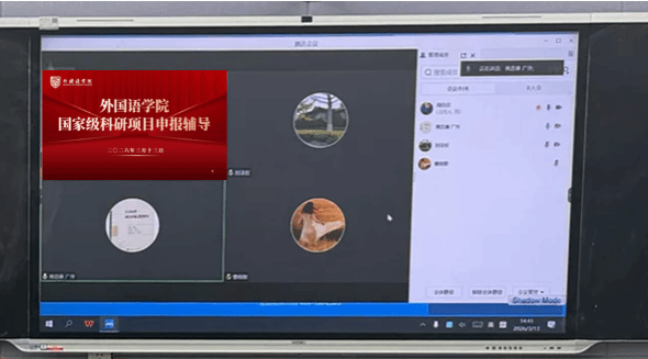 3月13日下午,外国语学院为提升教师高层次科研项目申报质量、厚植学术科研氛围,特邀广东外语外贸大学黄忠廉教授、河南大学刘泽权教授、西安工程大学胡伟华教授在线上开展国家高层次科研项目申报辅导。院长韩红建、科研副院长邹维及学院教授、申报项目的博士参会。