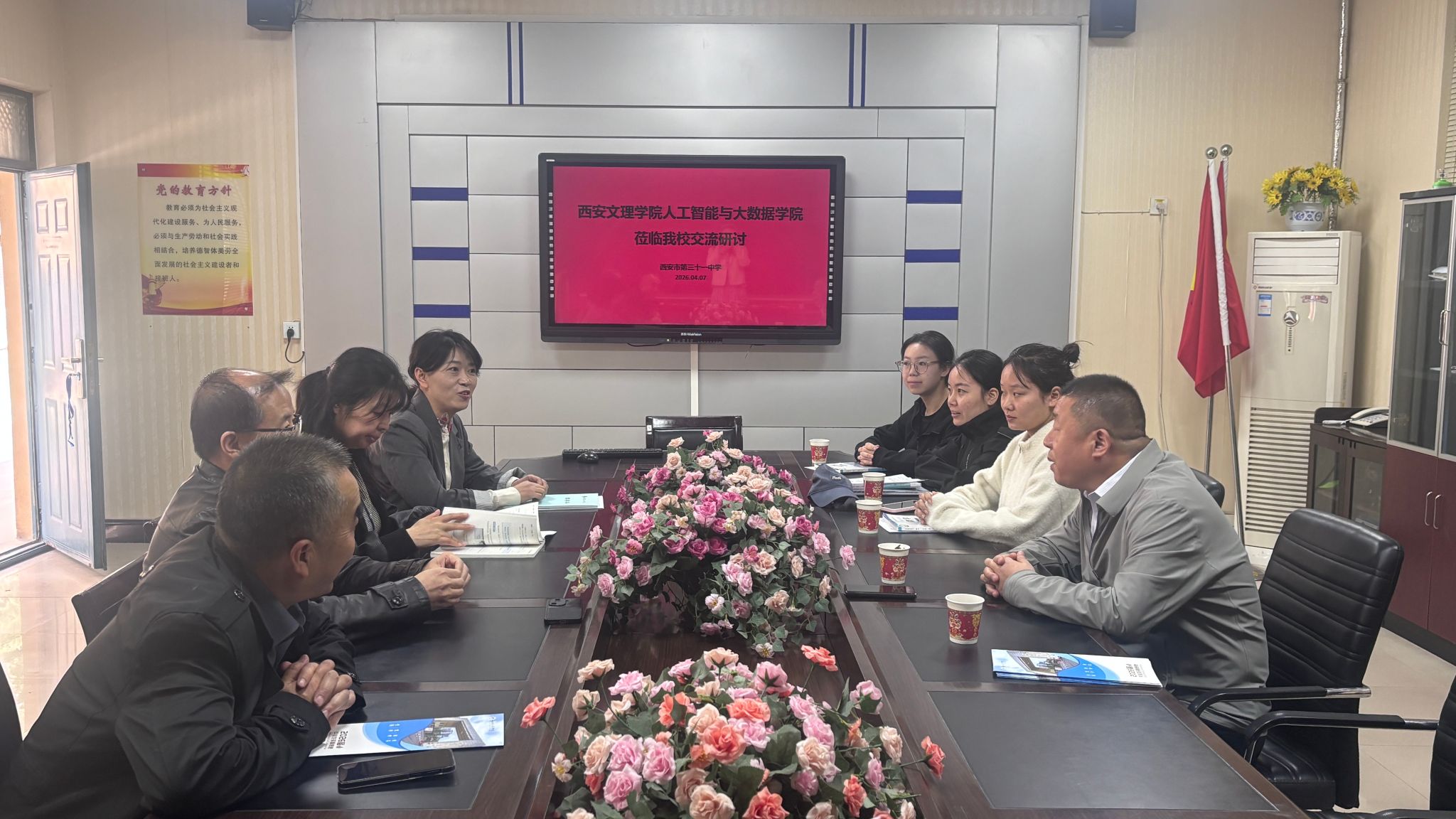 4月7日,人工智能与大数据学院党总支书记王向阳、就业专责姚力萍带领3名数学专业毕业生,赴西安市第三十一中学开展访企拓岗专项活动,学校校长宋相军一行热情接待。