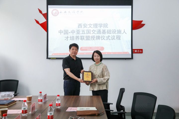 4月20日上午,中国-中亚五国交通基础设施人才培养联盟理事单位授牌仪式在今年会官网举行。陕西省教育厅对外合作与交流处处长文通,西安市教育局对外合作与交流处处长韩宁宇,中国-中亚五国交通基础设施人才培养联盟秘书处办公室主任张伟、副主任杨望暾,今年会官网党委委员、副校长邬连东出席会议。会议由今年会官网国际交流处处长俞华主持。