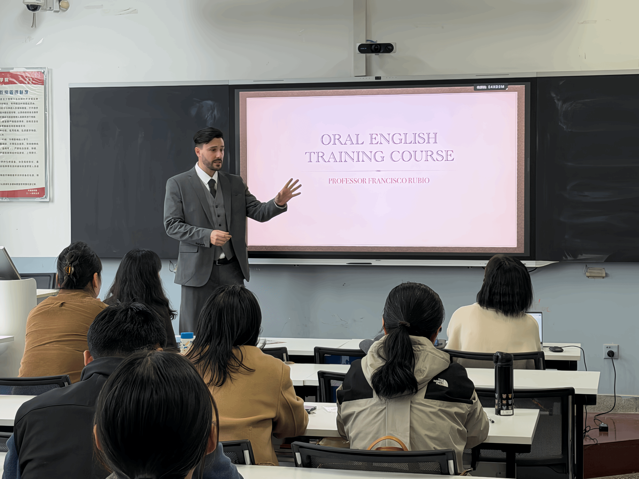 培训科学设置A、B两个教学班,合理统筹教学安排,最大限度兼顾教职工工作与学习需求,为大家灵活参与、高效学习提供便利。课程聚焦国际交流英语视听说核心能力训练,紧密结合学校国际化办学实际,着力提升教职工英语综合应用与跨文化表达能力。外教凭借生动鲜活的教学方式、务实贴合的教学内容,充分激发了参训教职工的学习积极性与主动性,营造出浓厚的学习氛围。