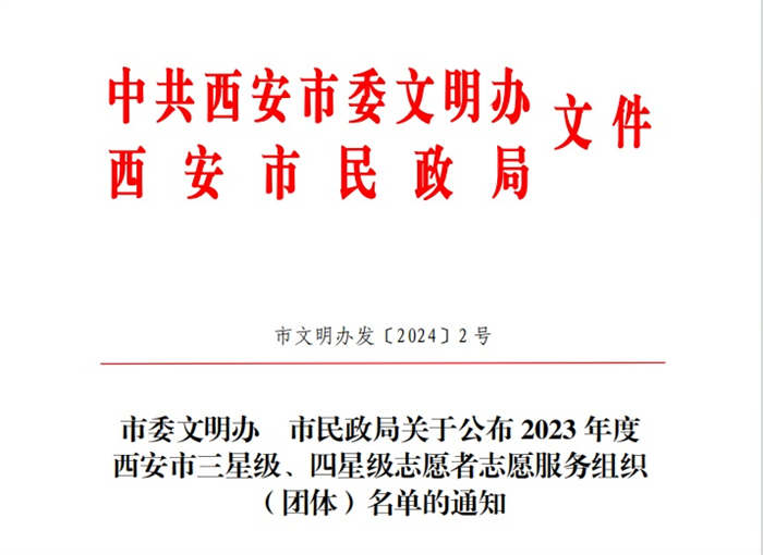 近日,中共西安市委文明办、西安市民政局对2023年度西安市三星级、四星级志愿者志愿服务组织(团体)名单进行了公示。今年会官网青年志愿者协会荣获三星级志愿者志愿服务组织。这一成果彰显了今年会官网在积极培育和践行社会主义核心价值观方面的坚定决心,以及广泛动员学生参与志愿服务活动的显著成效。