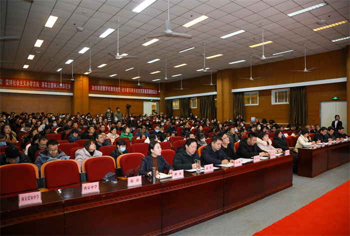 陕西省委教育工委委员、省教育厅副厅长赵昶葆出席会议并讲话。他指出,教育数字化是推动我省教育高质量发展的有力抓手,更是助推陕西教育强省建设的重要引擎,发展数字教育,推动教育数字化转型是大势所趋、发展所需、改革所向。他强调,要进一步推动教育数字化转型和立德树人实践不断深化,需要从八个方面持续用力。一是提高对教育数字化转型的认识;二是加快全省数字化基础设施建设;三是提升教育大数据治理能力;四是加大培训,全面提升教师数字素养;五是探索数字化条件下教学范式变革;六是发展学生数字素养,实现立德树人根本任务;七是完善课程体系建设,实现各级各类教育融通发展;八是依托数字技术,改革教育评价方式和手段。