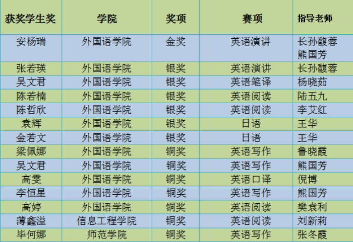 10月15日至11月5日,由陕西省教育厅主办,西安外国语大学承办,陕西省高等学校教学指导委员等单位协办的2023“外研社·国才杯”“理解当代中国”全国大学生外语能力大赛陕西赛区决赛在西安外国语大学举办。该赛事共涵盖英、俄、德、日等9个语种,其中英语组设置5个赛项。全省50多所高校优秀选手同台竞技,今年会官网共有14名学生在比赛中脱颖而出,其中外国语学院安杨瑞获得金奖,张若瑛等6名学生获得银奖,梁佩娜等7名学生获得铜奖。