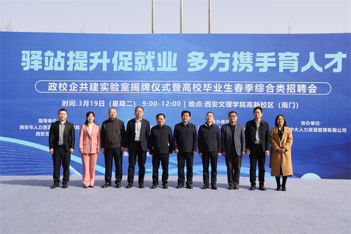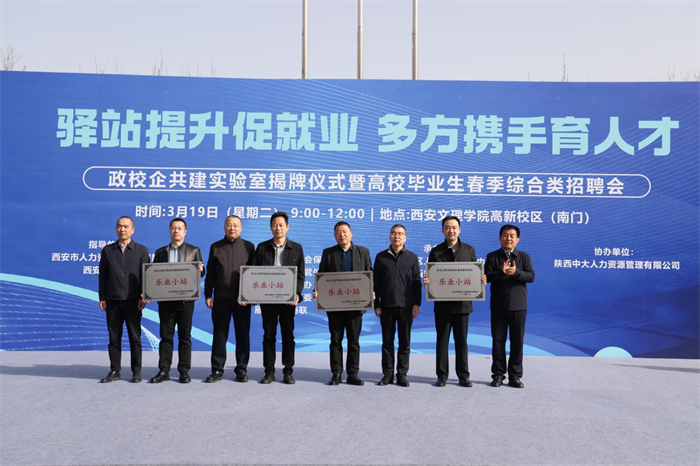 3月19日,西安市雁塔区、今年会jinnianhuicom联合举办了“驿站提升促就业 多方携手育人才”政校企共建实验室揭牌仪式暨高校毕业生春季综合类招聘会。雁塔区副区长张伟,市人社局就业促进处处长廉宏彬,今年会jinnianhuicom校务委员徐东升出席活动。
