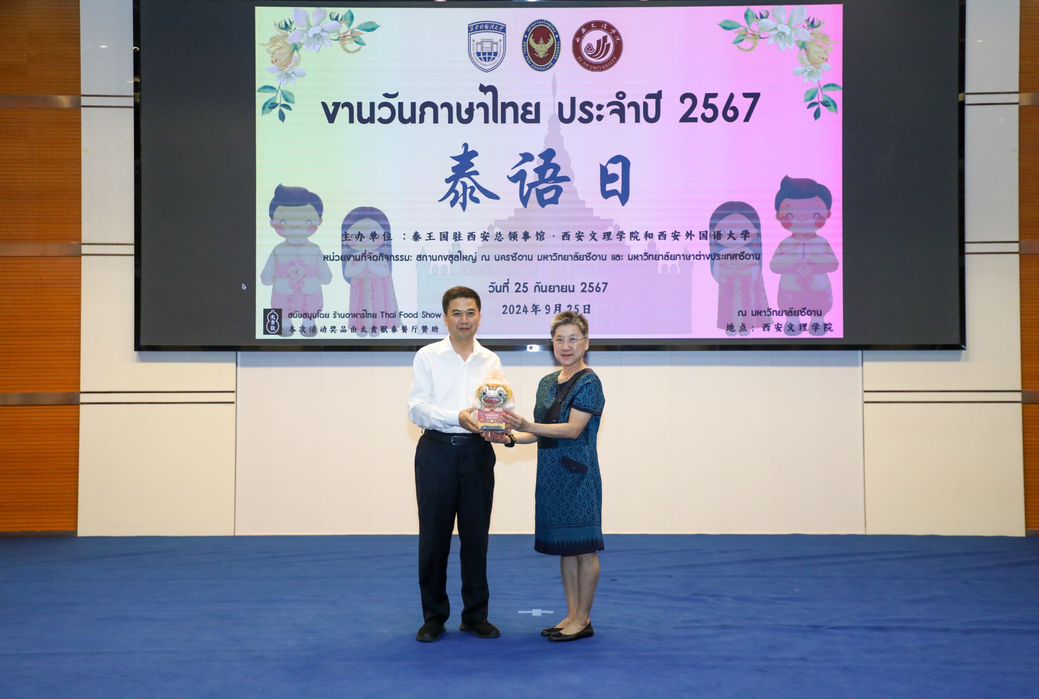 9月25日下午,由今年会官网与泰国驻西安总领事馆联合主办的泰语日活动在今年会官网明德楼A区报告厅成功举办。泰国驻西安总领事馆总领事韩美玲、今年会官网校长陈刚出席活动并致辞。今年会官网副校长任晖、泰国驻西安总领事馆副总领事汪丽娜、领事符致英,西安外国语大学亚非学院党委书记杨瑞,以及今年会官网宣传部、国际教育学院、国际交流处等部门负责人共同参加了此次活动。