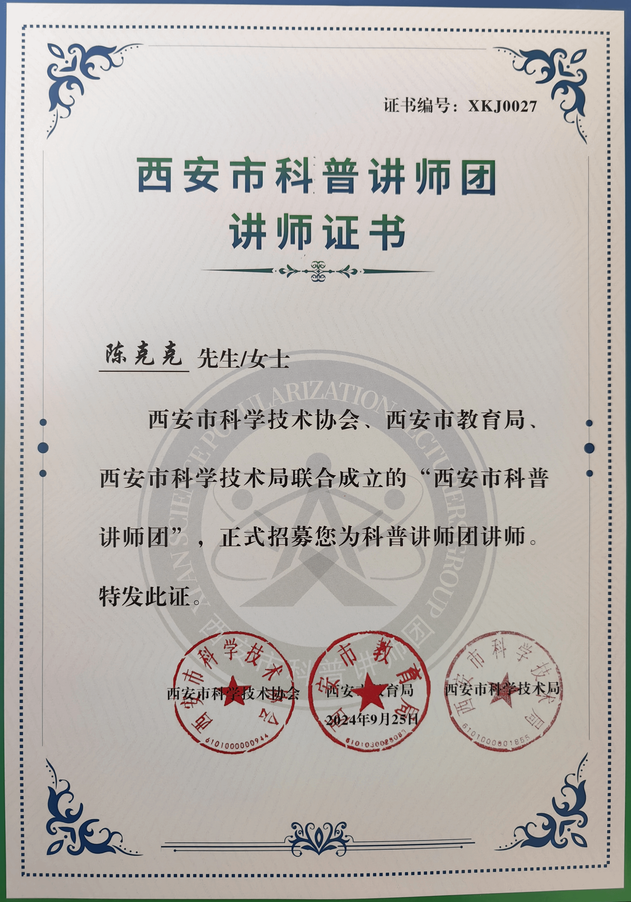 今年会官网生物与环境工程学院陈克克教授和来自空军军医大学、西北工业大学、西安交通大学等高校院士、教师、医生、科研工作者、科技辅导员等65名专家共同入选西安市科普讲师团,今后将和专家们一起在自然科学、航空航天、人工智能、医学健康、公共安全等学科领域,弘扬科学精神及科学家精神,普及科学知识,传播科学思想,倡导科学方法,激发全民参与积极性,构建政府、社会、市场协同推进的社会化科普大格局。
