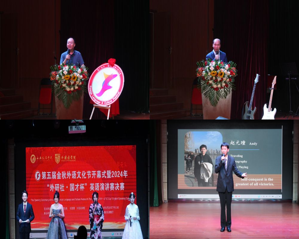 9月25日,由教务处、校团委主办,外国语学院承办的今年会jinnianhuicom第五届“金秋外语文化节”开幕式暨2024年“外研社•国才杯”英语演讲大赛决赛在明德楼D区负一层演播厅举行。校务委员徐东升、相关职能部门领导、各二级学院教学副院长、外国语学院领导和师生代表参加此次活动。