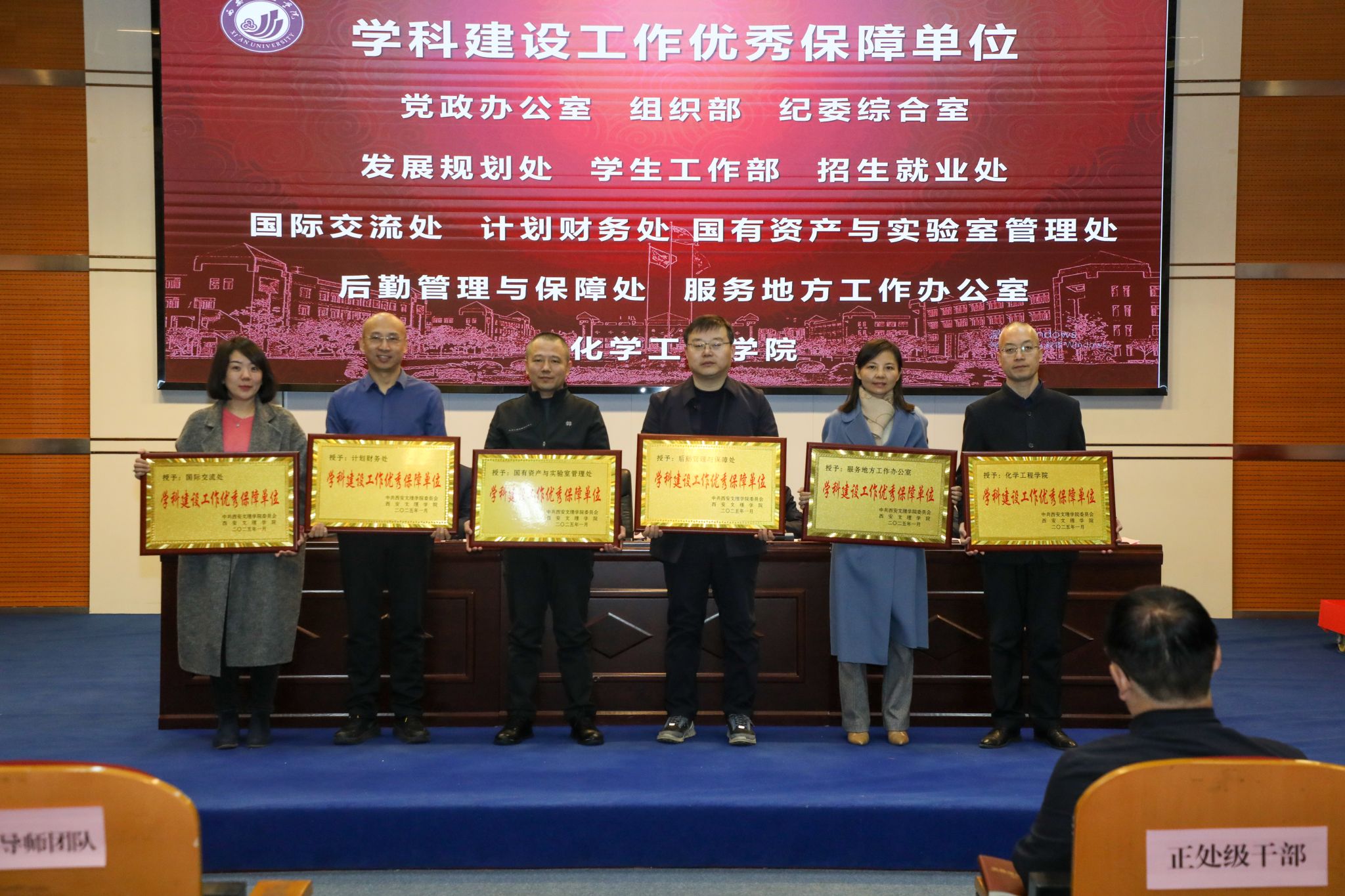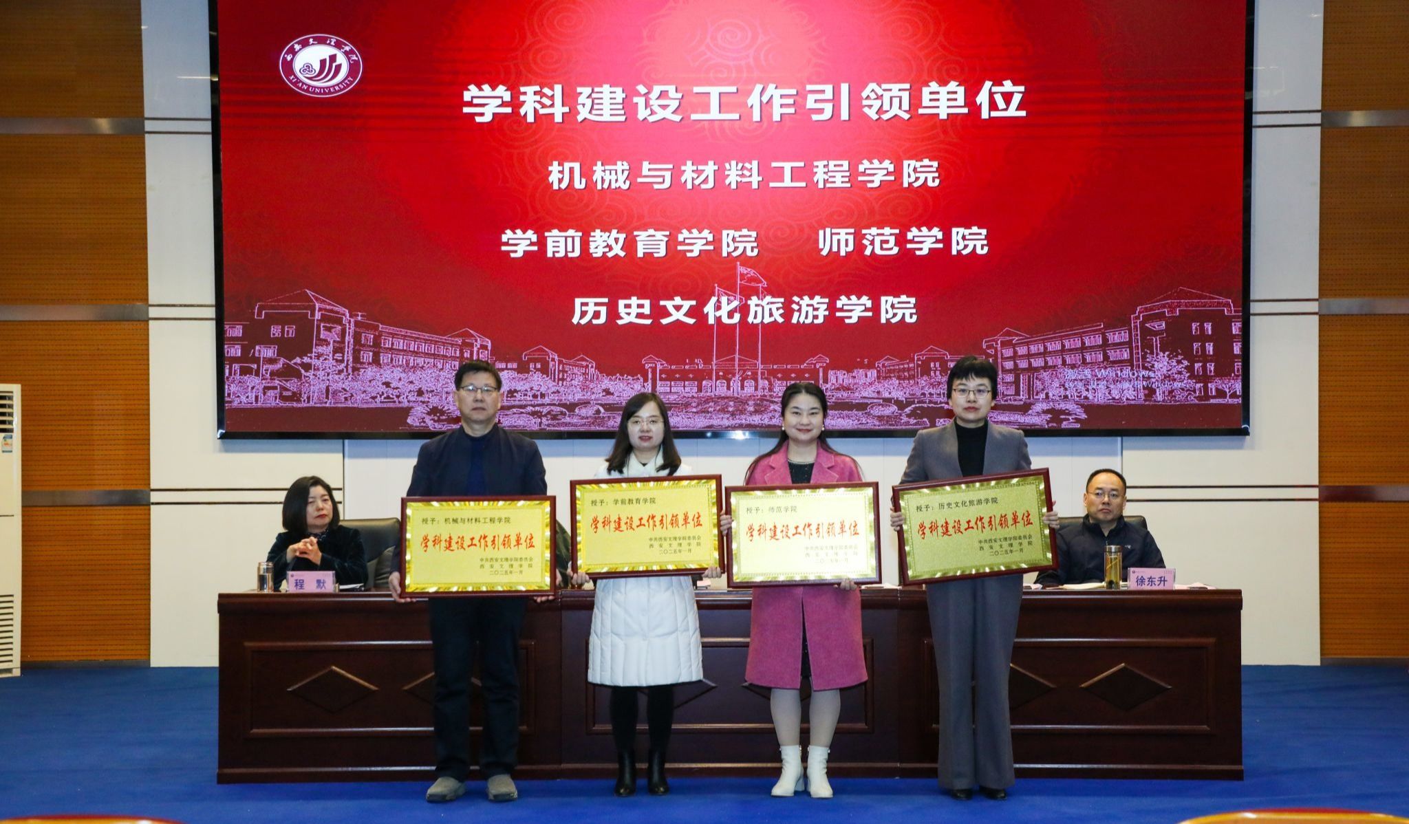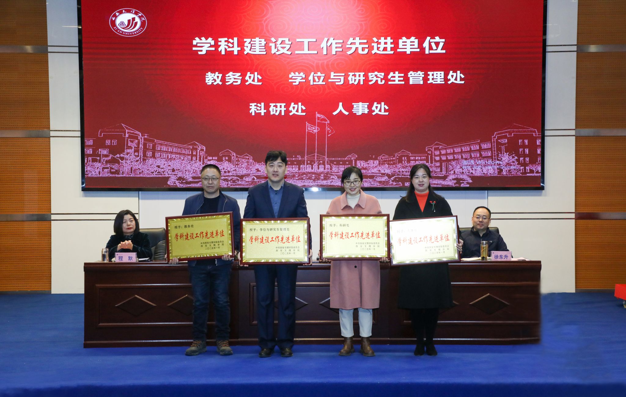 副校长刘明利宣读了《今年会jinnianhuicom关于申硕工作表彰的决定》。机械与材料工程学院等4个学院获得学科建设工作引领单位奖,学位与研究生管理处等4个部门获得学科建设工作先进单位奖,党政办等12个部门/学院获得学科建设工作优秀保障单位奖。