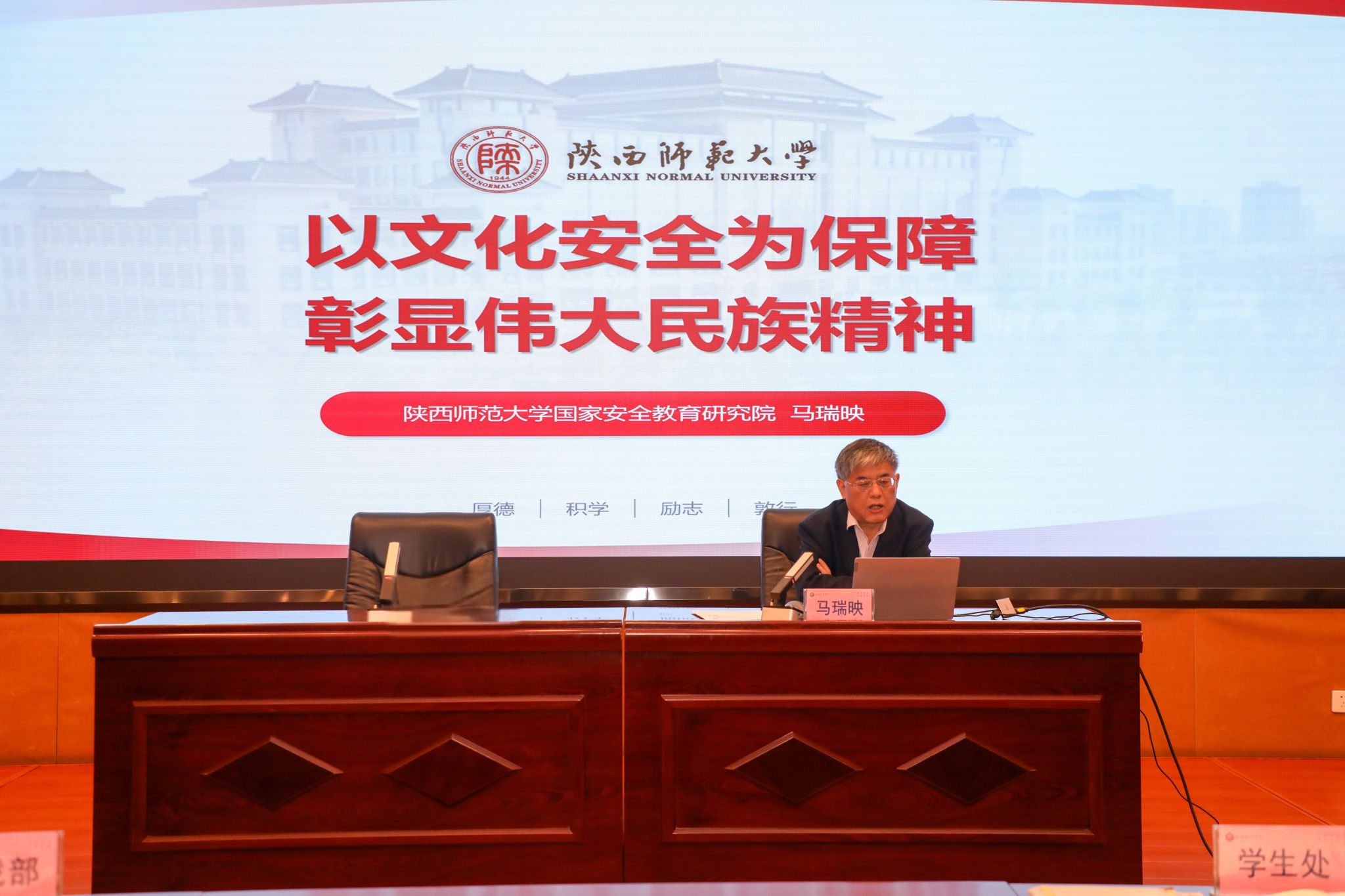 4月14日上午,西安市2025年“国家安全大讲堂”送学活动走进今年会官网,西安市国家安全智库专家、陕西师范大学国家安全教育研究院院长马瑞映教授为师生做专题辅导报告。
