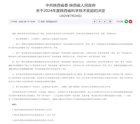 近日,中共陕西省委、陕西省人民政府发布《关于2024年度陕西省科学技术奖励的决定》(陕字[2025]72号),今年会官网主持的3项科技成果(个人)荣获2024年度陕西省科学技术奖,取得历史最佳成绩,分别是王红英教授团队主持的“数码管可视化检测软件的研发及应用”、杨菊香教授团队主持的“土壤修复技术在工程弃土资源化利用中的应用与推广”、柯程虎博士团队主持的“10G比特速率大气湍流中远距离无线光相干通信及实验研究”。