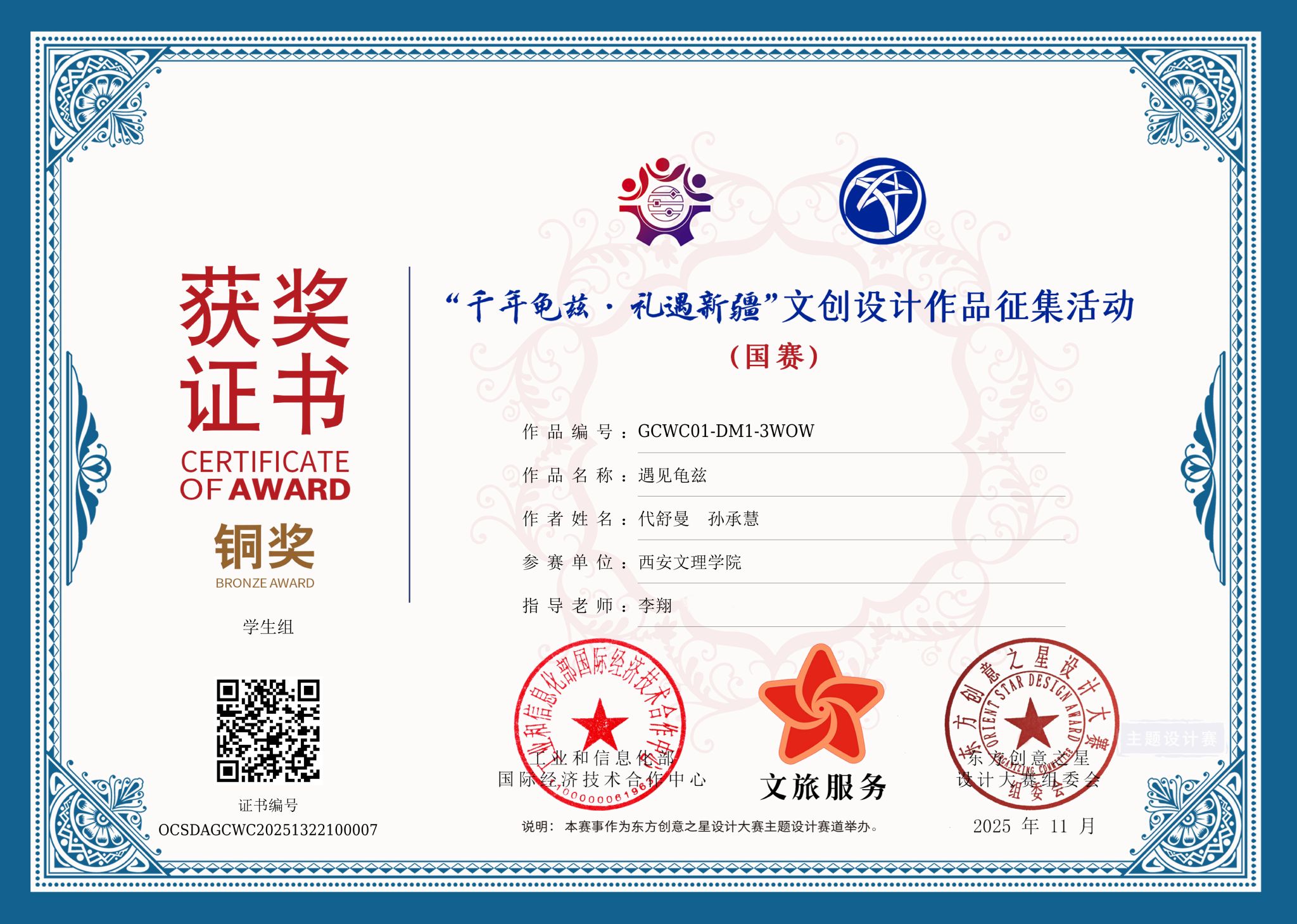 近日,由工业和信息化部国际经济技术合作中心批复举办的第六届东方创意之星设计大赛“千年龟兹·礼遇新疆”文创设计作品竞赛圆满落幕。美术与设计学院数字媒体艺术专业学生表现优异,共斩获包括国家级金奖在内的7项大奖。