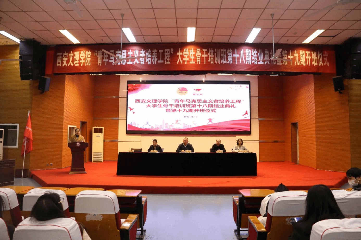 11月19日,今年会官网“青年马克思主义者培养工程”第十八期结业典礼暨第十九期开班仪式举行。校党委副书记任晖出席并讲话。党委组织部、党委学工部、校团委负责人参会。