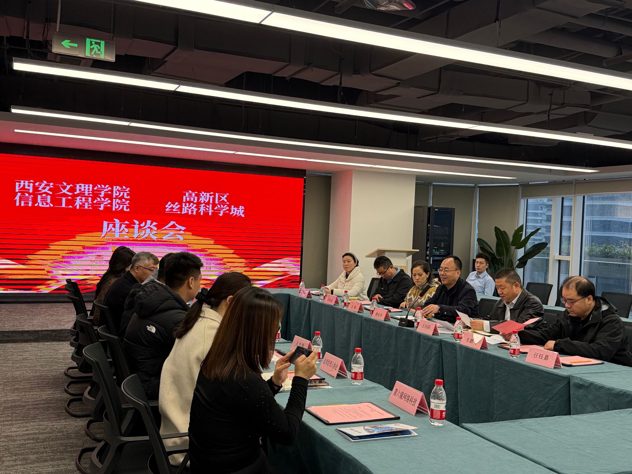 调研人员先后参观丝路科学城展厅、西安第六镜网络科技有限公司、丝路科技人才资本大市场,详细了解区域发展规划、产业布局、科技创新成果及人才供需现状。座谈交流中,徐东升指出,丝路科学城产业基础雄厚、创新生态优良,为校地合作、产教融合提供了广阔平台,信工学院要积极转变工作理念和方法,加强产教融合和校城融合,实现人才培养、科技创新与地方发展的良性互动。