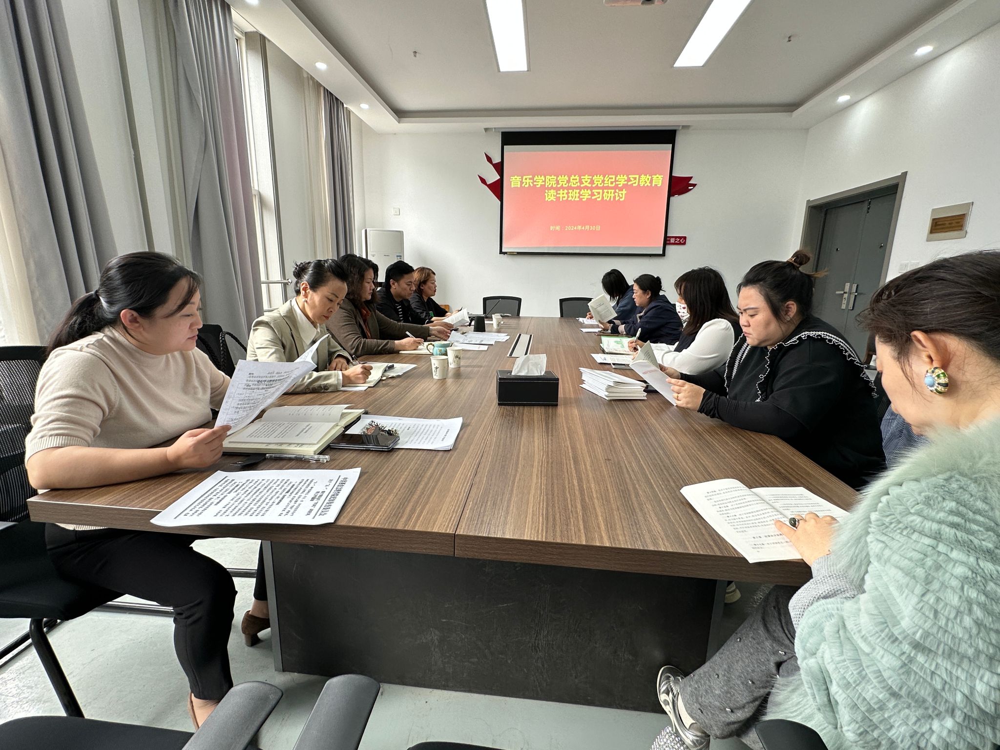 为深入学习贯彻习近平总书记关于党纪学习教育的重要讲话和重要指示精神,4月30日下午,音乐学院党总支举办党纪学习教育读书班,集中学习《中国共产党纪律处分条例》。音乐学院班子成员、党总支全体委员、党支部书记参会,会议由学院党总支书记贺星主持。