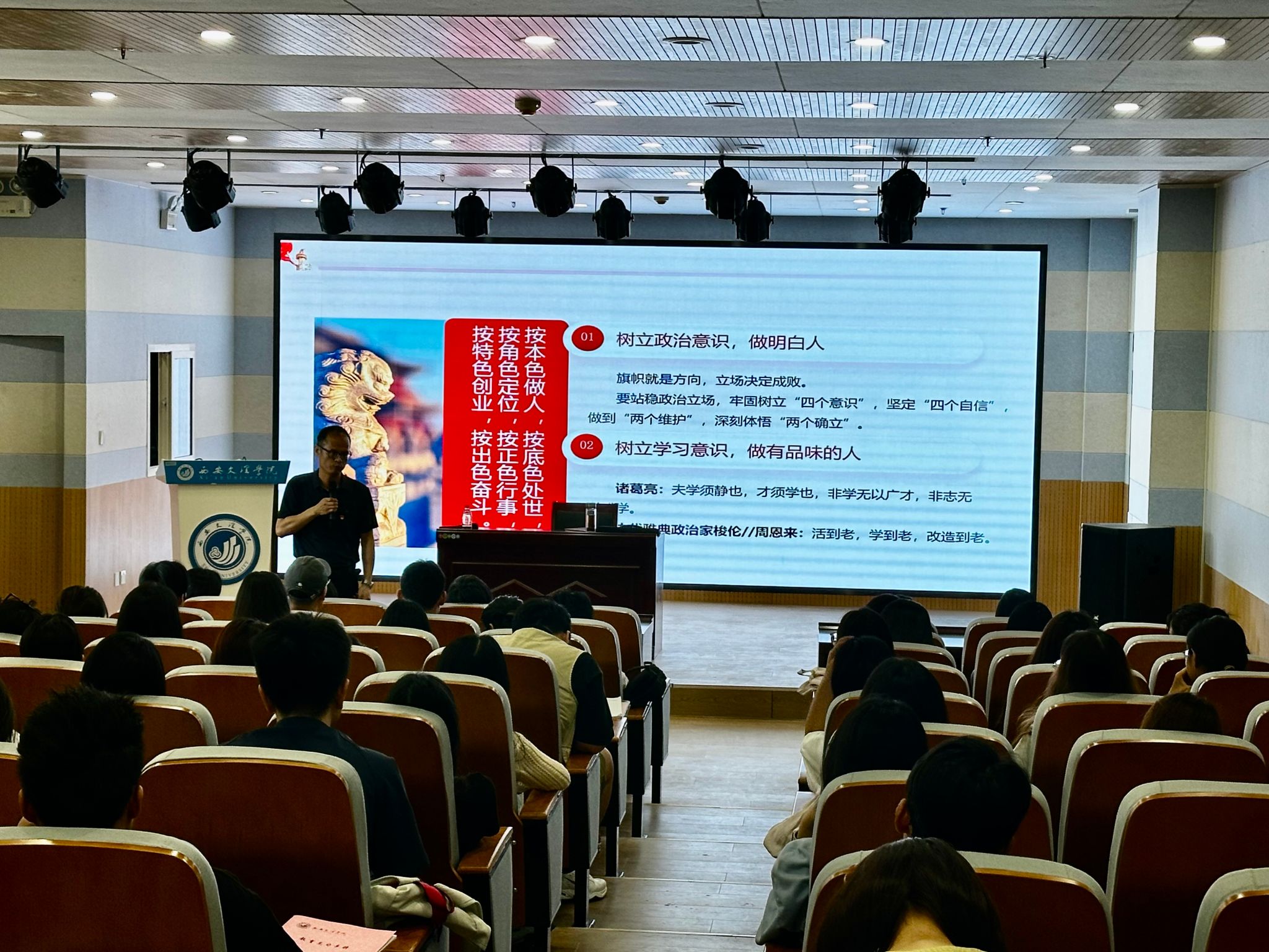 为深入学习贯彻习近平总书记关于党纪学习教育的重要讲话精神和重要指示精神,文学院党总支联合音乐学院、历史文化旅游学院、经济管理学院、外国语学院,于5月22日下午在明德楼c0415召开“强党性 守党纪 善修身”党纪学习教育专题党课。本次党课由西安市鄠邑区党校党委书记、常务副校长李攀峰主讲,文学院党总支书记李莎莎主持,教师、学生党员代表共计120人参会。