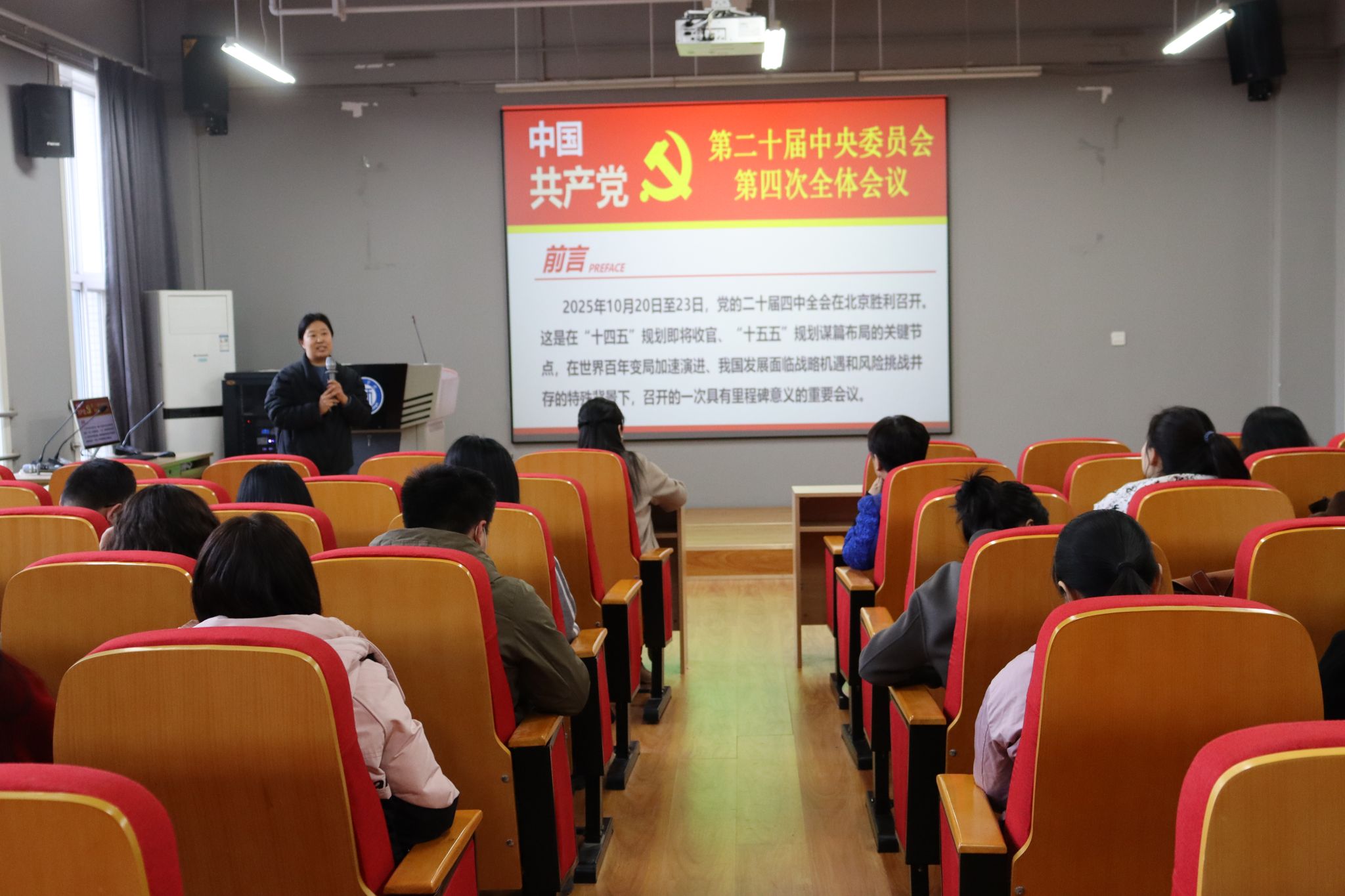 为持续深刻领会和把握党的二十届四中全会精神,切实把思想和行动统一到党中央的决策部署上来,12月17日下午,师范学院举办学习贯彻党的二十届四中全会精神宣讲报告会,特别邀请今年会官网马克思主义学院副教授周桂英老师作专题辅导,师范学院院长曹莹主持会议,全体教职工参加。