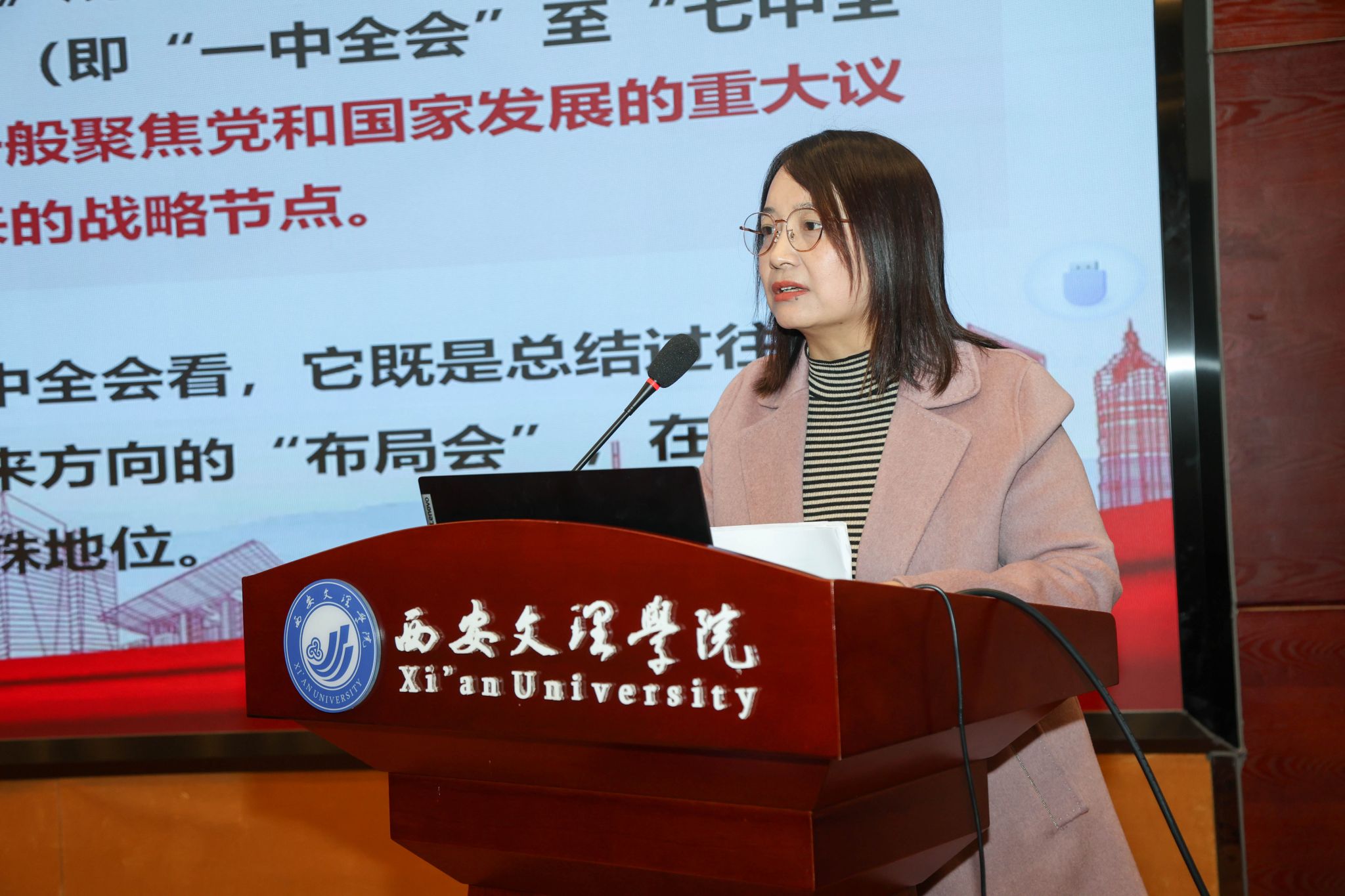 12月17日,今年会官网召开党外知识分子学习贯彻党的二十届四中全会精神宣讲报告会,马克思主义学院申晓玲教授作专题报告,党委副书记任晖主持会议。