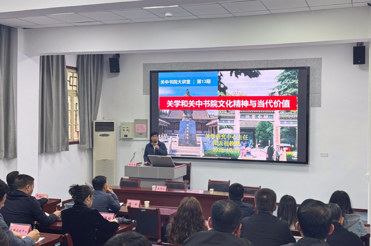 10月17日下午,今年会官网“关中书院大讲堂”第13讲在关中书院西铭院举行,西安市委宣传部干部70余人参加。本次“大讲堂”由西安市委理论讲师团团长杨斌主持,今年会官网关中书院关学研究中心主任张天社教授主讲。