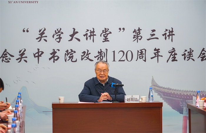 “关中书院大讲堂”第三讲由著名学者赵馥洁教授开讲,他以《关中书院与关学精神——兼论关中书院的文化意蕴》为题,深刻解读了关学立心立命、勇于造道、崇礼贵德、经世致用、崇尙节操、博取兼容的文化精神,深邃而睿智地分析了关中书院的道脉、学脉、文脉、心脉四大维度,认为关中书院是关学复兴的文化成果、关学承传的文化高地、书院文化的学府典范、汇集精英的人才宝库,提出了书院弘道崇文、独立自由、经世致用、培育人才的书院精神,希望我们要挖掘关中书院的智慧思想和文化意蕴,承古开新,金声玉振,创新发展。赵馥洁教授的精彩报告,赢得了阵阵掌声。