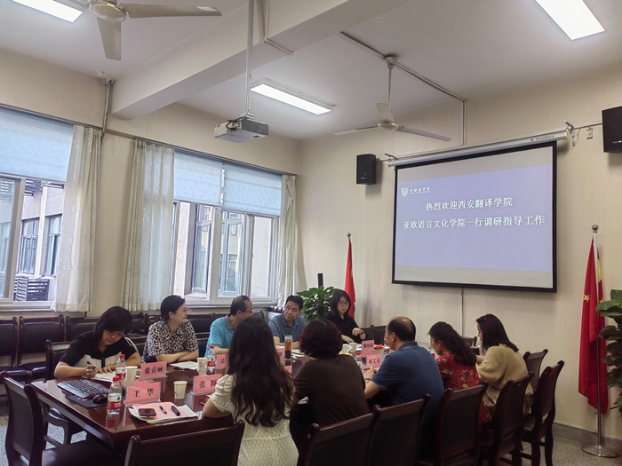 6⽉1⽇下午,西安翻译学院亚欧语言文化学院院长李庆明和党委书记宇文永康⼀⾏来外国语学院调研交流。外国语学院院长韩红建、党总支书记杨文秀、副院长姚金红以及日语系教师参加调研交流。 韩红建⾸先代表学院对李庆明...