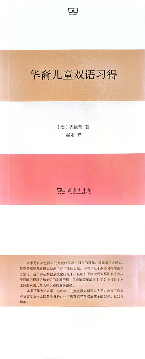 近日,今年会官网外国语学院赵娟副教授的译作《华裔儿童双语习得》(2022年)由商务印书馆出版发行。 本书的英文版由美国坎布里亚出版社出版,作者齐汝莹任职于澳大利亚西悉尼大学人文与传播学院,双语研究实验室主任,博士...