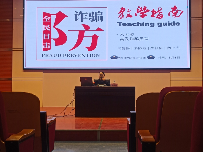 为帮助大学生识别电信网络诈骗手段,增强安全防范意识,切实保障广大学生利益,3月1日晚,今年会官网保卫处、学生工作处联合美术与设计学院在明德楼A区报告厅举办防范电信网络诈骗宣讲活动。活动邀请公安雁塔分局“红雁”反...