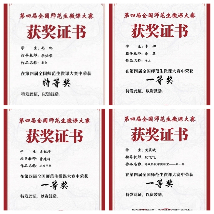 在第四届全国师范生微课大赛中,师范学院参赛作品从来自全国162所院校的2703份作品中脱颖而出,荣获特等奖1项,一等奖3项,李灿荣被评选为优秀指导教师。 全国师范生微课大赛是由教育部陕西师范大学基础教育课程研究...