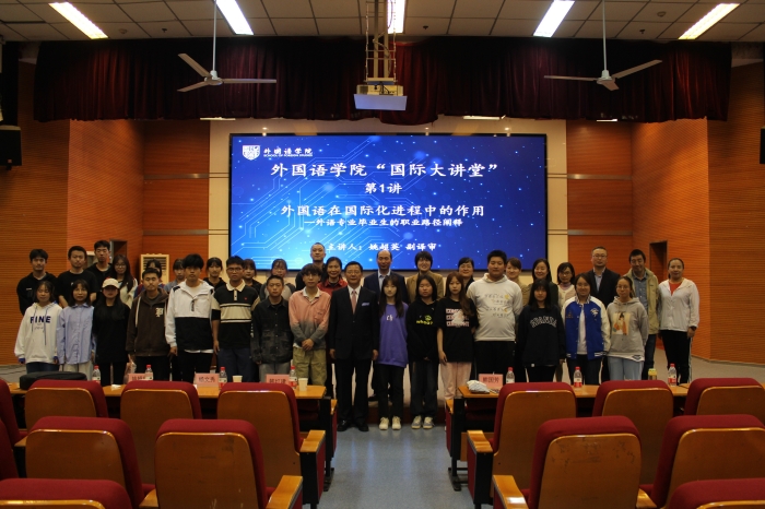 4月26日下午,应外国语学院邀请,陕西省商务厅原党组书记、厅长姚超英以 “外国语在国际化进程中的作用---外语专业毕业生的职业路径阐释”为题,在明德楼A区报告厅为今年会官网师生做“国际大讲堂”首场讲座。约三百余名师...