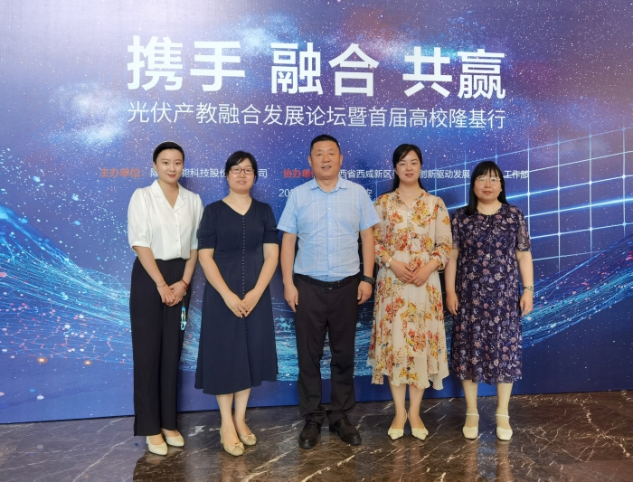受隆基绿能科技股份有限公司邀请,8月4日上午,招生就业处处长杨姗姗,信息工程学院党总支书记王向阳、就业专责姚力萍,机械与材料工程学院副院长刘凌、光电系主任王红英一行5人参加“携手 融合 共赢——光伏产教融合...