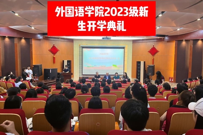 8月29日,外国语学院2023级新生开学典礼暨开学第一课在图书馆报告厅举行。学院领导班子成员、教授、系部主任、副主任、办公室及学工办全体人员、2023级全体新生参会,典礼由学院学生工作负责人李巧玲主持。 伴随着温...