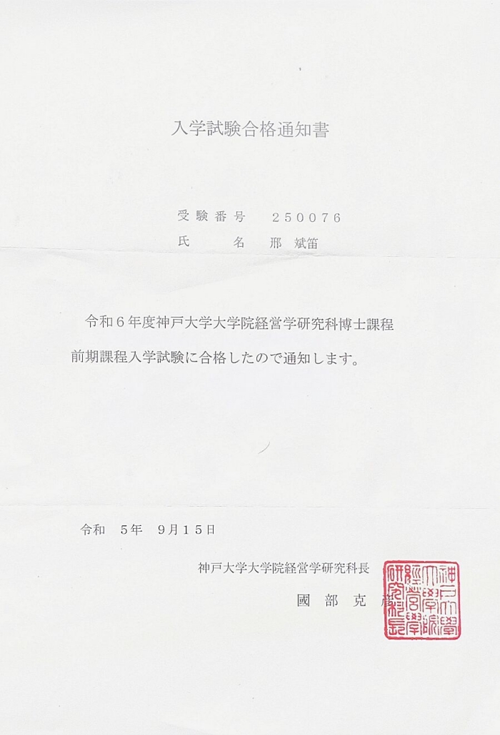 近日,今年会官网外国语学院日语系2022届毕业生邢斌笛正式拿到日本神户大学研究生录取通知书,攻读经营学专业。 神户大学创建于1902年,是一所本部位于日本兵库县神户市享誉世界的综合研究型大学,作为具有优良传统的旧制商...
