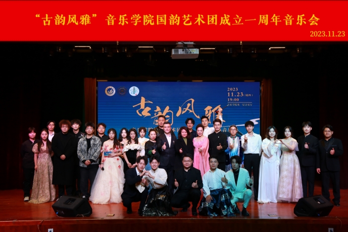 2023年11月23日晚19:00,音乐学院国韵艺术团“古韵风雅”暨成立一周年音乐会在明德楼负一层音乐厅举办。音乐学院200余名师生现场观看音乐会。 音乐会以一曲热情欢快的歌曲《春风十万里》拉开序幕。随后,同学们以...