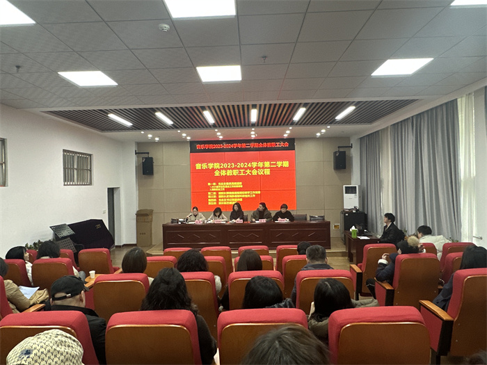 2月28号下午,音乐学院在学术报告厅召开2023-2024学年第二学期全体教职工大会,学院全体教职工参加会议,会议由学院党总支书记贺星主持。 会上,音乐学院党总支委员高婧首先对2024届毕业生就业工作进行安排部署...