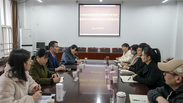 3月6日上午,西安职业技术学院现代商学院院长朱向峰、党总支书记杨琴等一行4人来历史文化旅游学院座谈交流。学院院长崔林,党总支书记刘倩倩,副院长裴书研、朱晓晴,旅游管理系主任刘世栋、文物与博物馆学系主任卫雪...