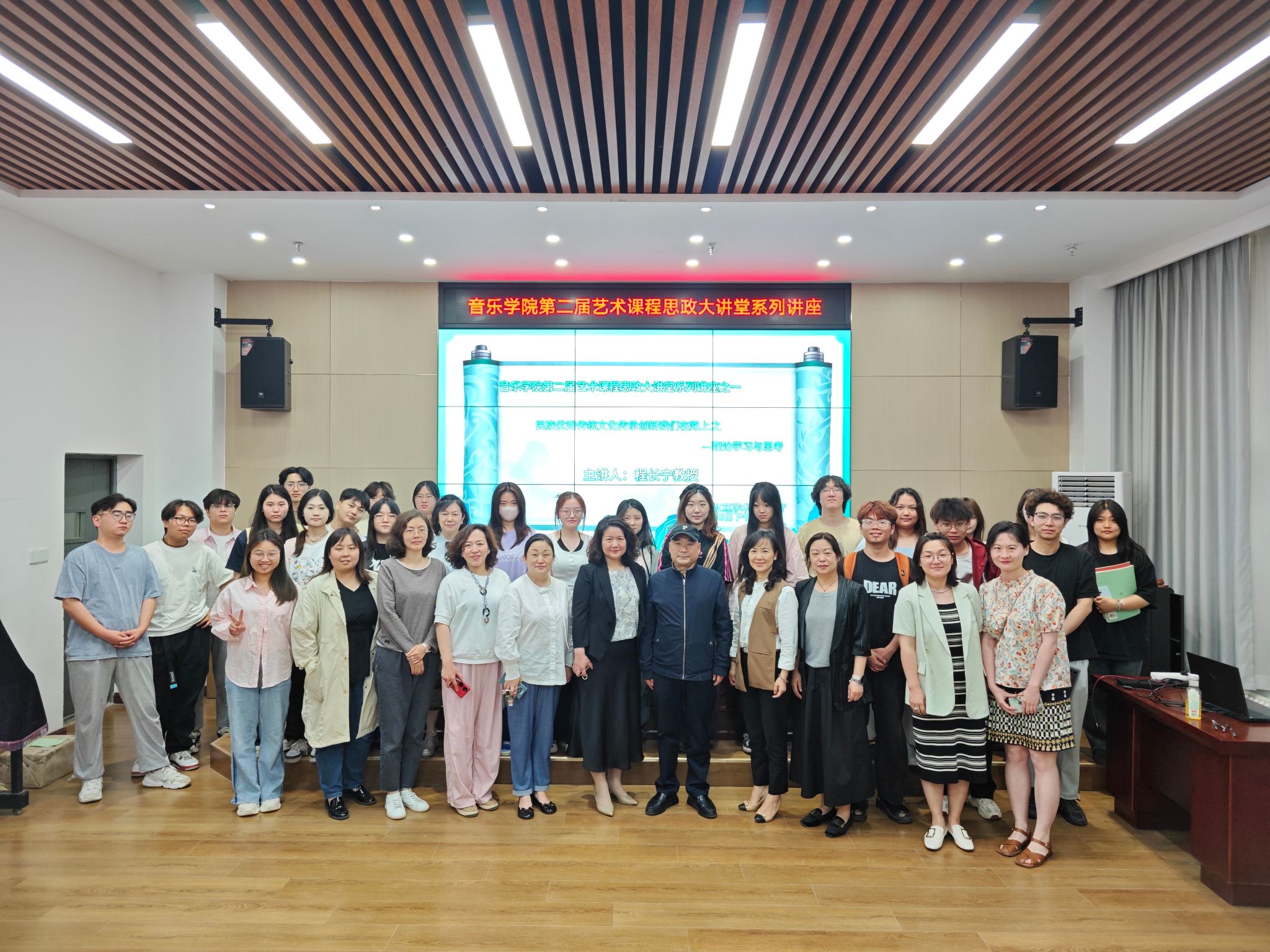 5月8日下午,音乐学院在明德楼C103报告厅举办了由程长宁教授主讲的第二届课程思政大讲堂系列讲座——《民族优秀传统文化传承创新我们在路上之理论学习与思考》,音乐学院领导班子成员、教师代表及音乐学2023级学生参加讲座,讲座由音乐学院院长杨艺媛主持。讲座中程教授就如何开拓艺术创作思路与现场师生展开了热烈交流,通过什么是传承文化、如何创造性转化民族音乐及创新性发展音乐创作三个部分的讲解将中国优秀传统文化传承与发展进行了深刻诠释。...