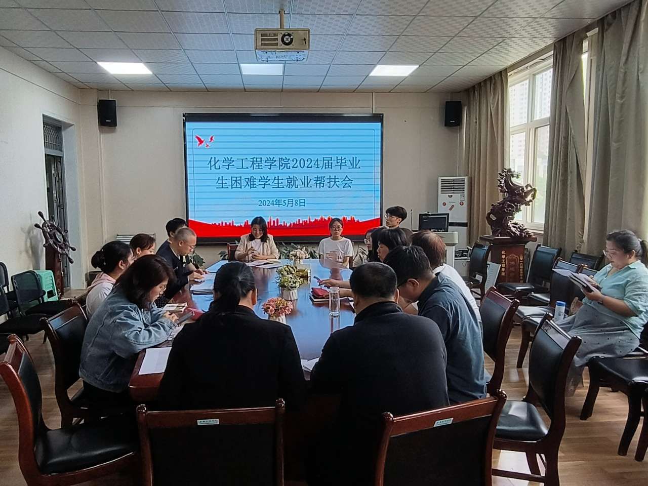 5月8日,化学工程学院组织召开2024届毕业生困难群体就业帮扶会,学院院长翟云会,党总支书记曹贤姿,帮扶教师及毕业生参会,会议由学工办副主任张莎主持。首先,张莎介绍了学院2024届毕业生总体就业情况以及学院开展学业、就业帮扶情况,以及学院目前就业工作开展情况。随后,未就业学生分别就目前自身就业情况进行了交流分享。针对学生提出的就业困难,政策模糊、观念冲突等问题,与会教师纷纷给出了中肯的建议和指导。之后,翟云会对与会毕业生提出殷切期望,...