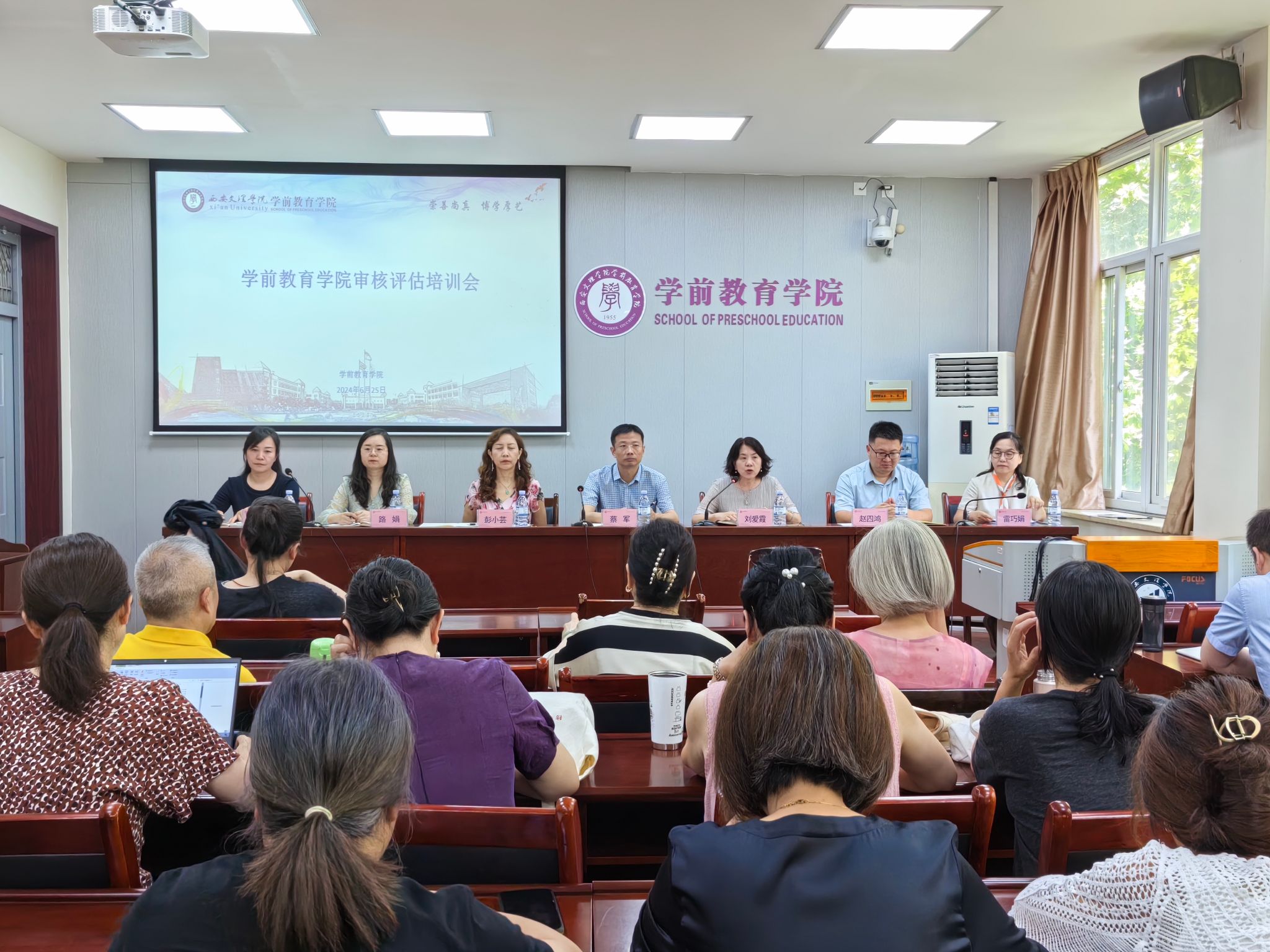 6月25日下午,学前教育学院在弘文楼H301召开了审核评估培训会。全体教职工参加会议,党总支委员向维娜主持会议。首先,党总支书记刘爱霞详细传达了学校党委扩大会精神,对审核评估专家进校的准备工作做了全面部署和动员。并从环境创设、访谈技巧、三风建设、组织保障等方面进行了具体安排。党总支委员雷巧娟带领全体教职工学习了本科教育教学审核评估工作相关知识,主要内容包括:审核评估基本知识、学院审核评估自评报告重点内容、...